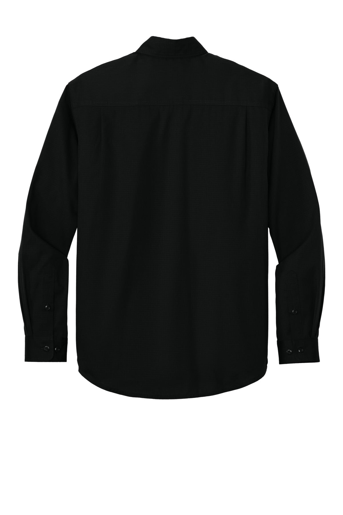 Built from durable ripstop this rugged shirt looks professional and performs with grit throughout any tough job. 5-ounce 60/40 polyester/cotton ripstop Stain release Reinforced triple-needle stitching Button-down collar Dyed-to-match buttons Double button-through chest pockets Left pocket pen slot Back pleats Rounded adjustable cuffs Rental-friendly